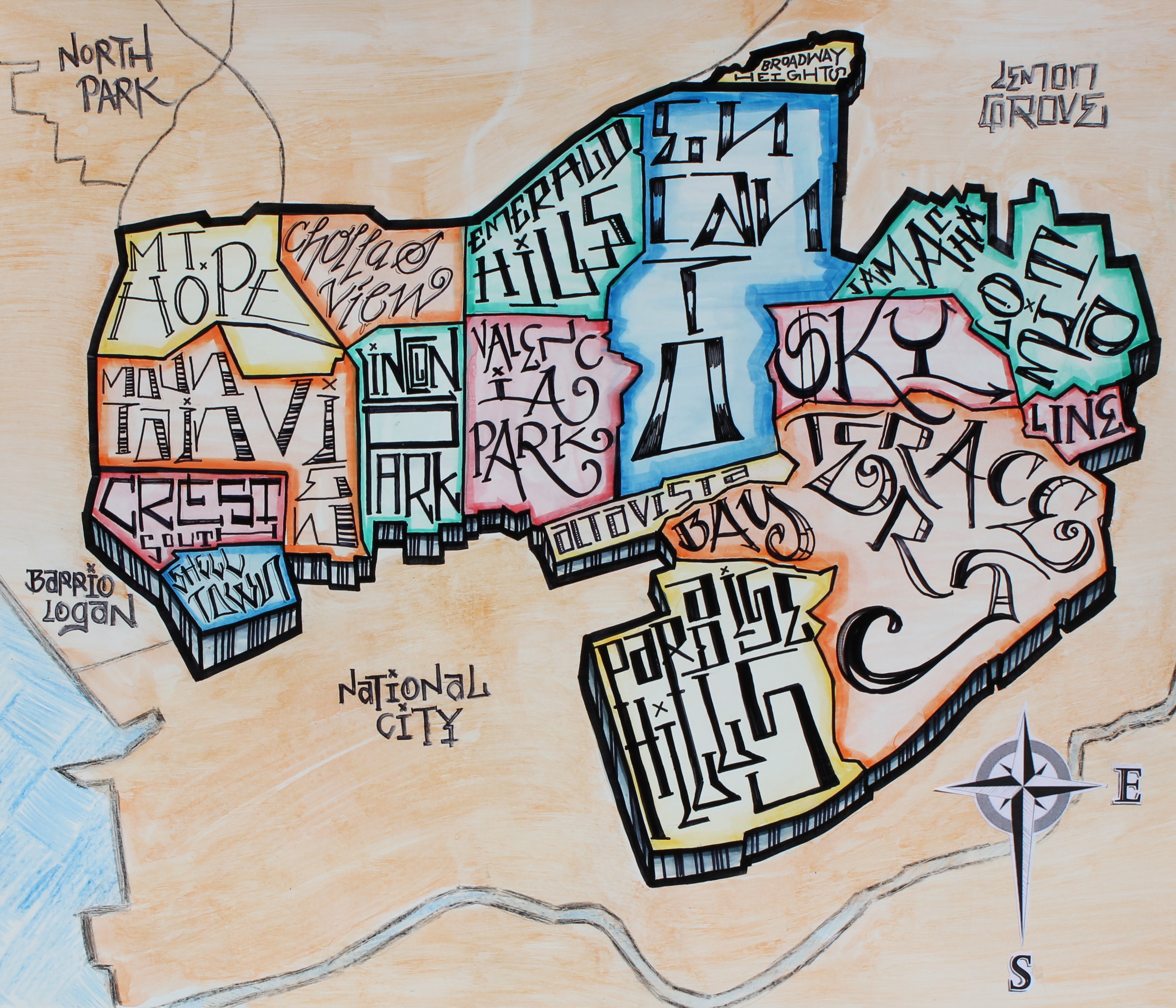 Southeast San Diego holds a special place in the hearts of its past and present residents. Like the metal pea that clinks in a can of spray paint, it stirs the spirit. Putting the old neighborhood on the map! This one’s for the home team(s).